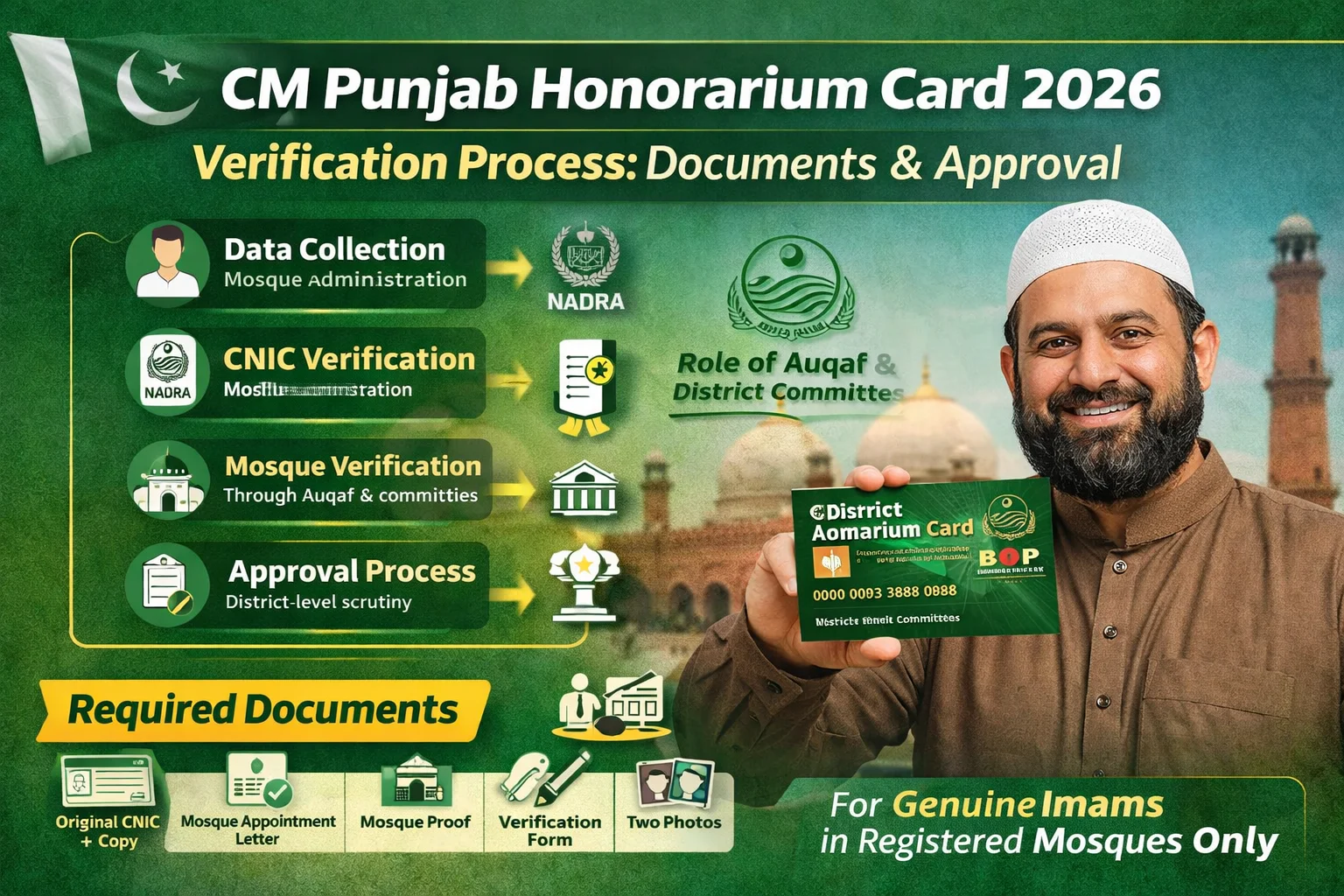 CM Punjab Honorarium Card Verification Process 2026 is not just a financial aid program—it is a fully verified and transparent system designed to ensure that only genuine mosque Imams receive the monthly stipend of Rs. 25,000.