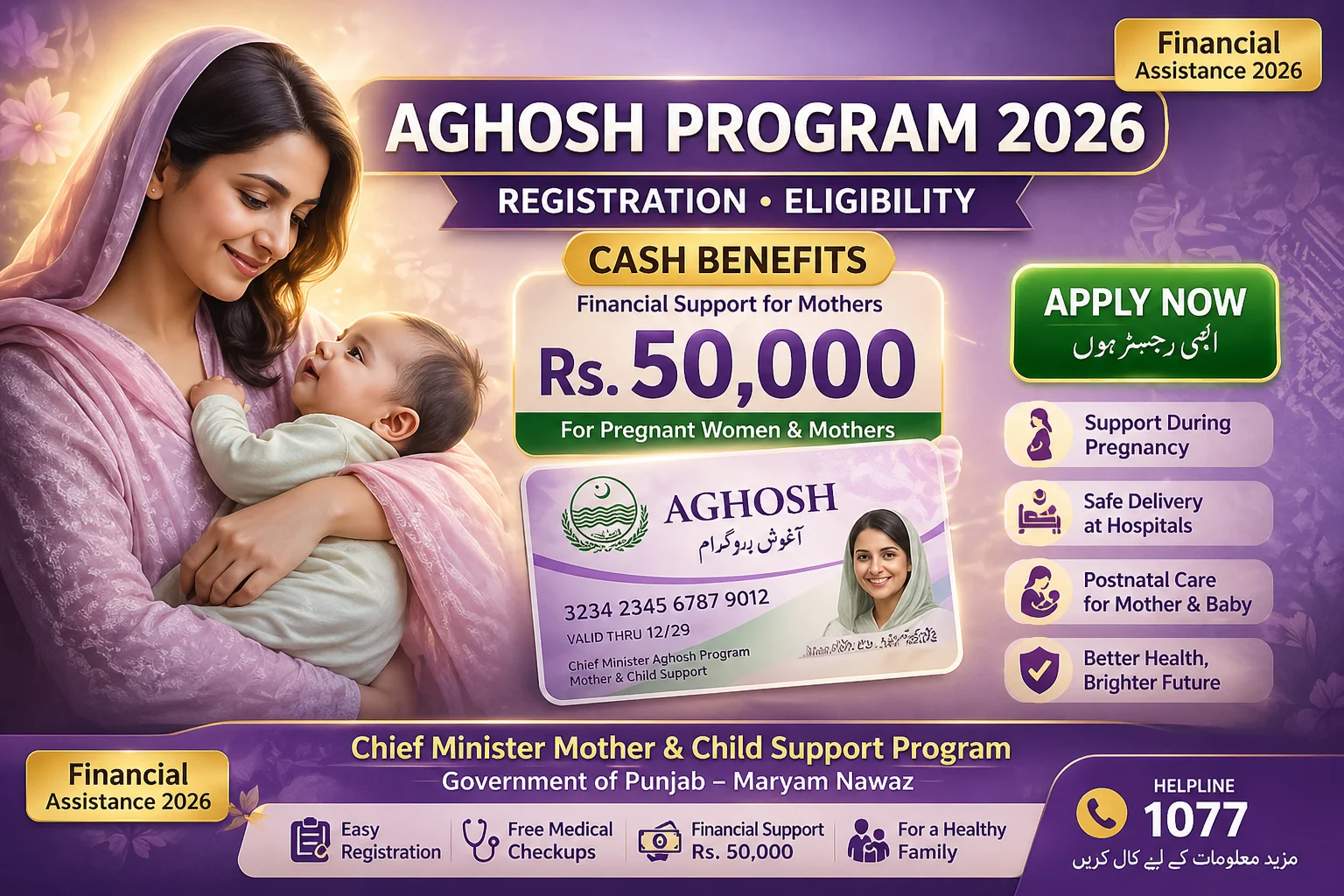 Lahore, May 2026 — The Government of Punjab has introduced the Chief Minister Aghosh Program 2026, a major welfare initiative aimed at supporting maa aur bachon ki sehat. Under this scheme, eligible pregnant women and mothers of newborns will receive Rs 50,000 financial assistance to help cover healthcare, nutrition, and early childcare expenses.